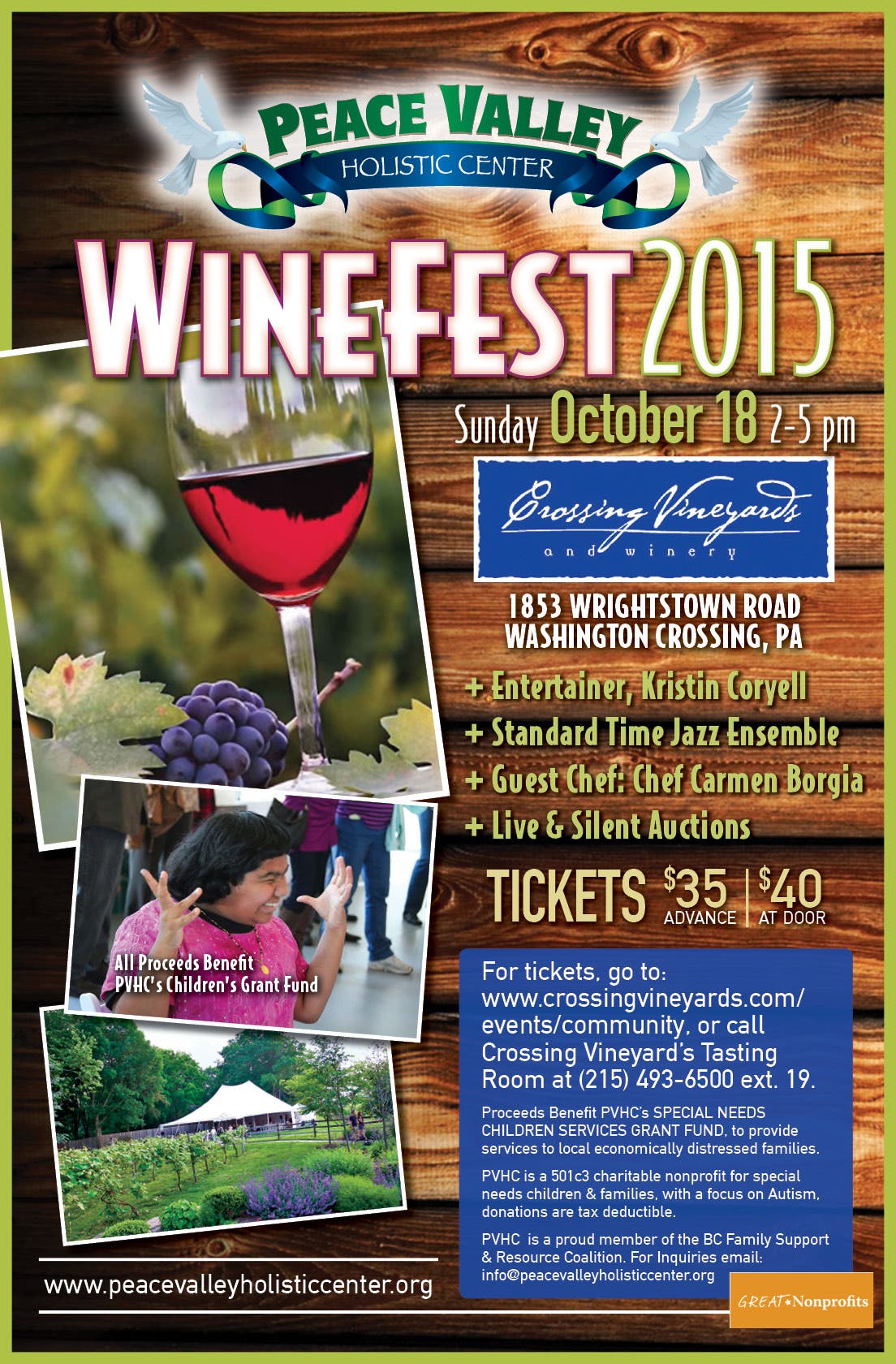 PEACE VALLEY HOLISTIC CENTER WINE FEST Fund Raiser for Autism @ CROSSING VINEYARDS & WINERY, This Sunday 10/18, from 2-5PM!