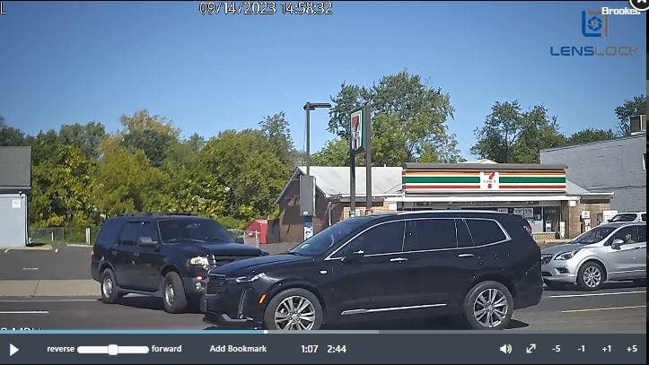 She fled in a black Cadillac XT6 with a plain white paper tag with no visible numbers, police said.