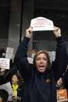 The teachers continued to chant "Negotiate" as the board members made their way to the board table, while parents cheered and chanted "Ritchie" before board President Ritchie Webb entered the meeting.