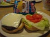A young server brought a Chicken Quesadilla ($6.99) soon after we had tried our Zinfandel. He asked if we wanted our meal in courses or if we preferred having things when they were ready. We told him to bring them as they are done, and he returned with a Cheeseburger ($6.49).