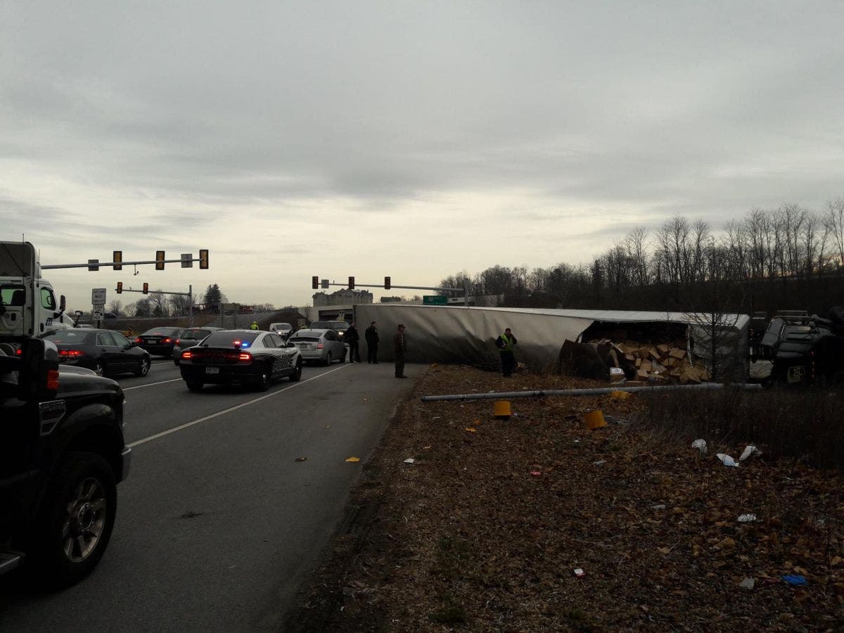 The truck flipped as it was attempting to turn onto a bypass ramp,