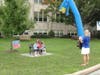 Instead of a golf green, the balls were dropped near yellow flags on the school's athletic field. Each flag represented a prize, including a pool party and gift certificates to local businesses.