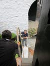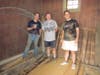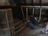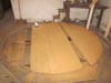The barrel had a bottom–which was now still on the floor. The bottom consisted of planks that were individually pieced together. They were joined with pegs–like the insert of a dining room table. Each one was hand carved. Rather than completely disassembling the floor, we took it apart in large pieces that could be reassembled in the same arrangement with the same pegs facing the same way.
