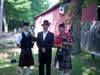 My favorite memories of Colonial Day involve two weddings that were held at the Newtown Square Meeting House. In 1999 or so, we had arranged for actors to act out a Quaker wedding, and sent out invitations, and promised a wedding reception at the Square Tavern after the event–open to all. At the last minute, the actors canceled on us. A friend of a friend and I agreed to step into the role of bride and groom.