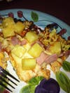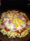 3. Add your toppings! I chose a Hawaiian-style pizza topping because it is one of my favorite combinations but you can be creative. When you are done adding the toppings, place your oven on broil. Place your pizza back into the oven and broil for 4 to 5 minutes or until your toppings are melted and the cheese browns.