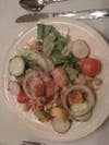 For entrees, we had the enormous broiled seafood platter ($28.95), the potato crusted salmon ($18.95) and the linguini with white clam sauce ($17.95). All three entrees came with a fresh garden salad with seasoned croutons, tomatoes, chickpeas, cucumbers, carrots and radishes. They offer almost any dressing you can think of but we chose old standbys, thousand island and French.