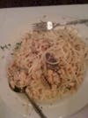 The linguini with clam sauce was a mountain of noodles and a double dose of chopped clams. We ended up taking home about half of it.
