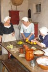 Activities include plowing and harvesting in the fields and hearth cooking and textiles.