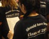 Students wore T-shirts announcing what year they "should have" graduated from Nativity along with bracelets that read, "Nativity BVM 1912-2012, Forever in Our Hearts."