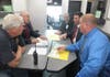 Photo five: Meeting in the mobile command post to review the situation at hand are (l to right): Township Fire Marshall Alan Mancill; Superintendent James Wigo, County Emergency Services Deputy Director Ed Bebe; County Emergency Services Director Tim Boyce and Glenwood Elementary Principal Eric Bucci.