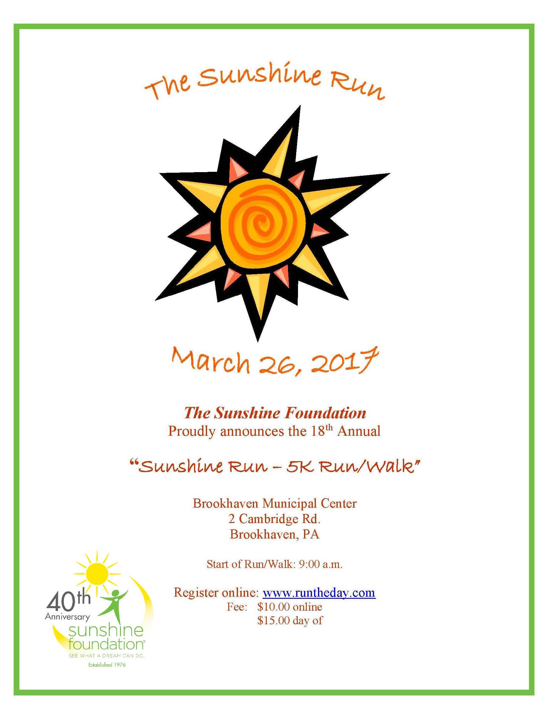 Event Registration: https://www.runtheday.com/registration/race_info/sunshine-run