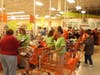 The tightly packed front end was bustling with shoppers grabbing grand opening deals. Orange-and-green-clad employees had to direct shopping cart traffic to keep aisles clear.