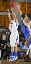 Allen High School's boys basketball team fought back from a 10-point haftime deficit to force an overtime period against defending LVC champion Nazareth Area High School, during one of Wednesday night's LVC tournament semi-final round games at Fredom High School in Bethlehem. Nazareth took control in overtime and came away with a 58-54 victory. They will face Liberty on Friday night at Freedom in the conference championship game.