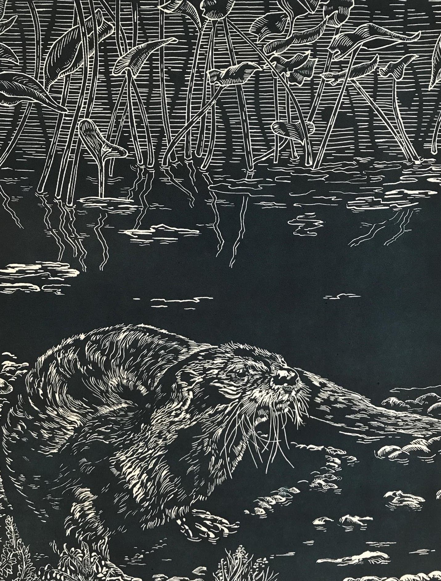"Otter," a line cut by artist Ron Balerno of Yardley.
