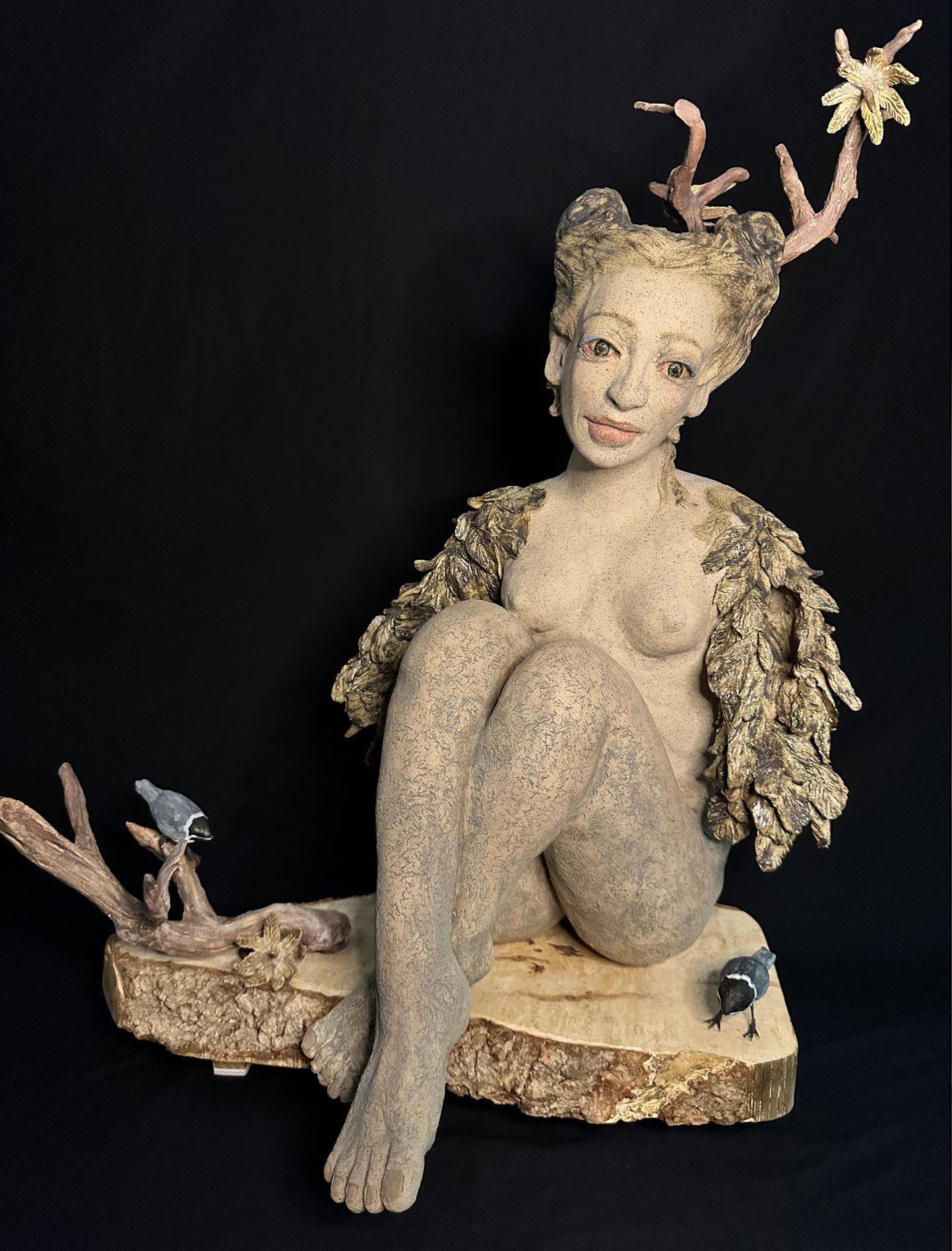 "Perch," a clay figure by Milford artist Shawn Campbell.