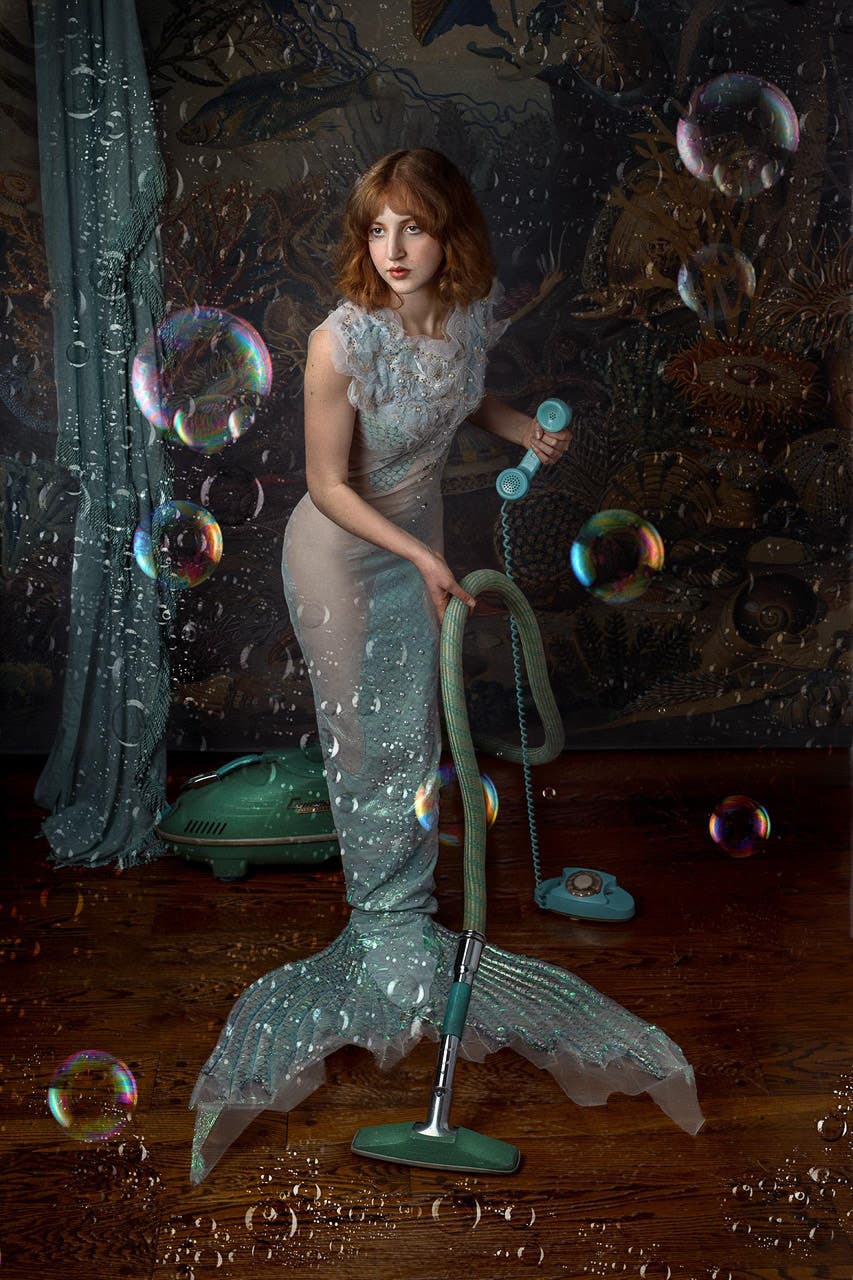 These meticulously crafted and enigmatic works, which hint at the complexity of gender roles, also suggest Ms. Gershon’s own background in art history. As she states on her website, “Over the years I have experimented with various photographic styles, but I’m most drawn to painterly portraiture…. Storytelling plays an important role in the creation of my portraits.”