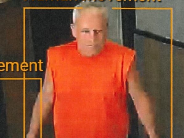Security footage shows the suspect filling a container of food, handing the stolen food to a