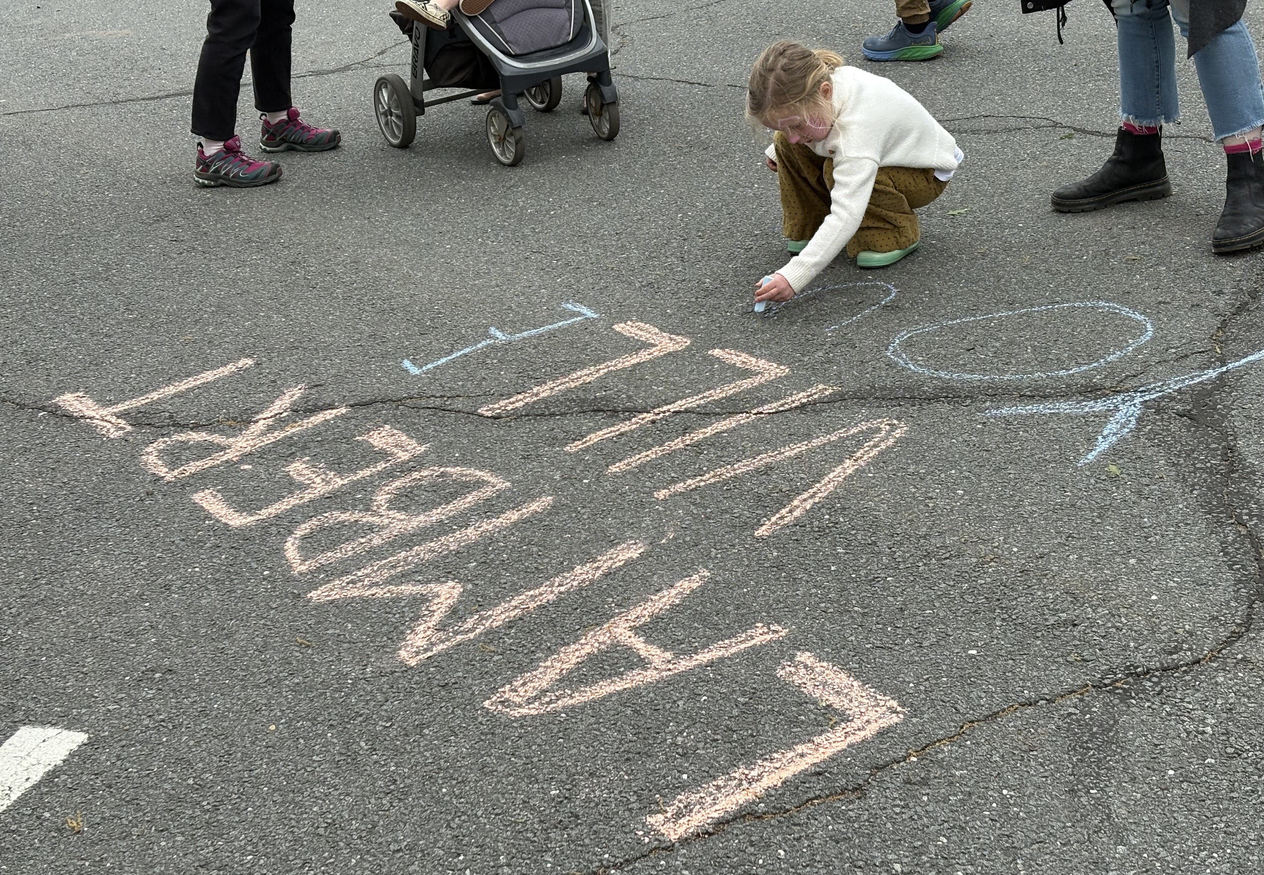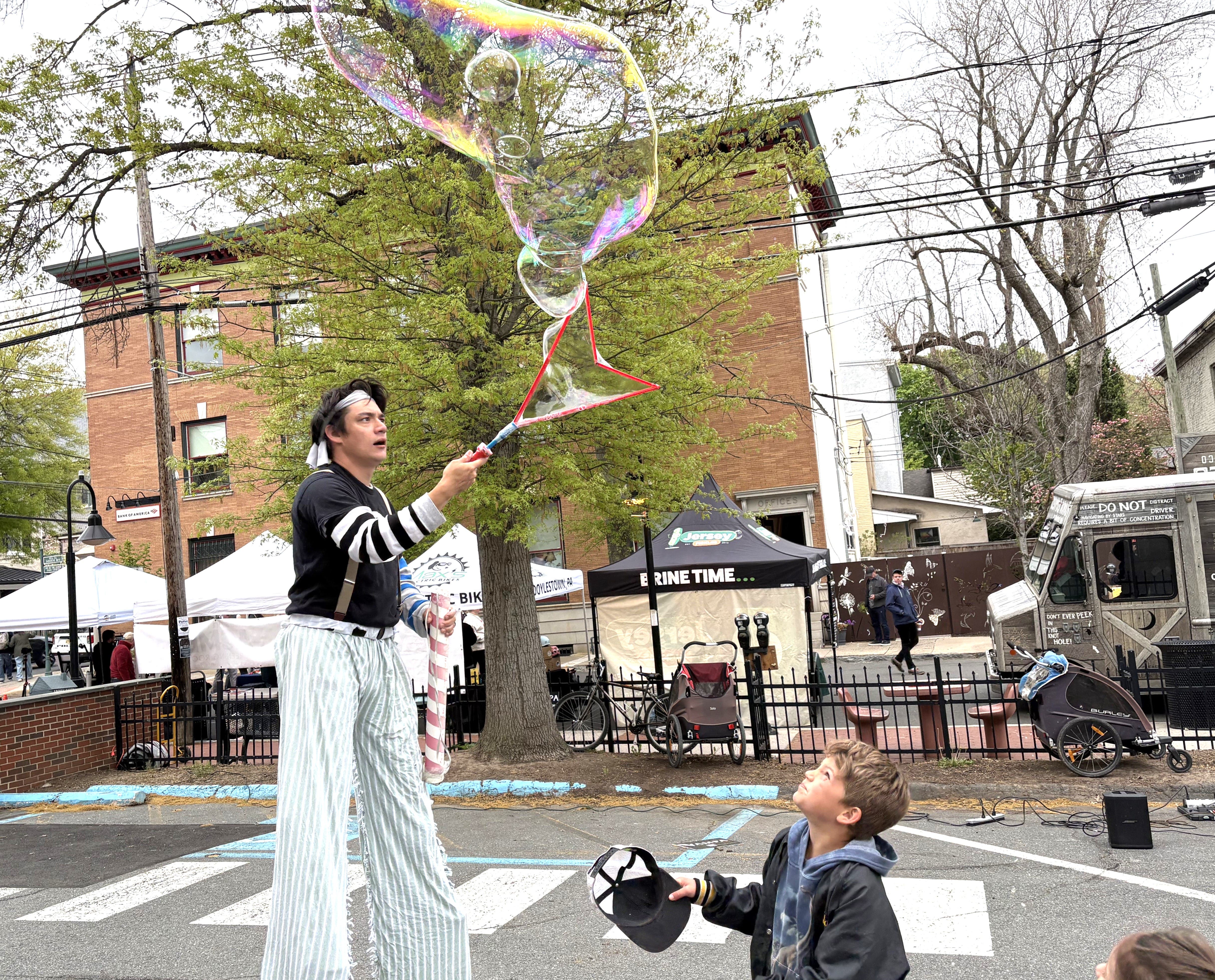 Giant bubbles filled the air at the Wells Fargo parking lot as kids played a game of "pop the bubbles." (Jeff Werner/Patch)