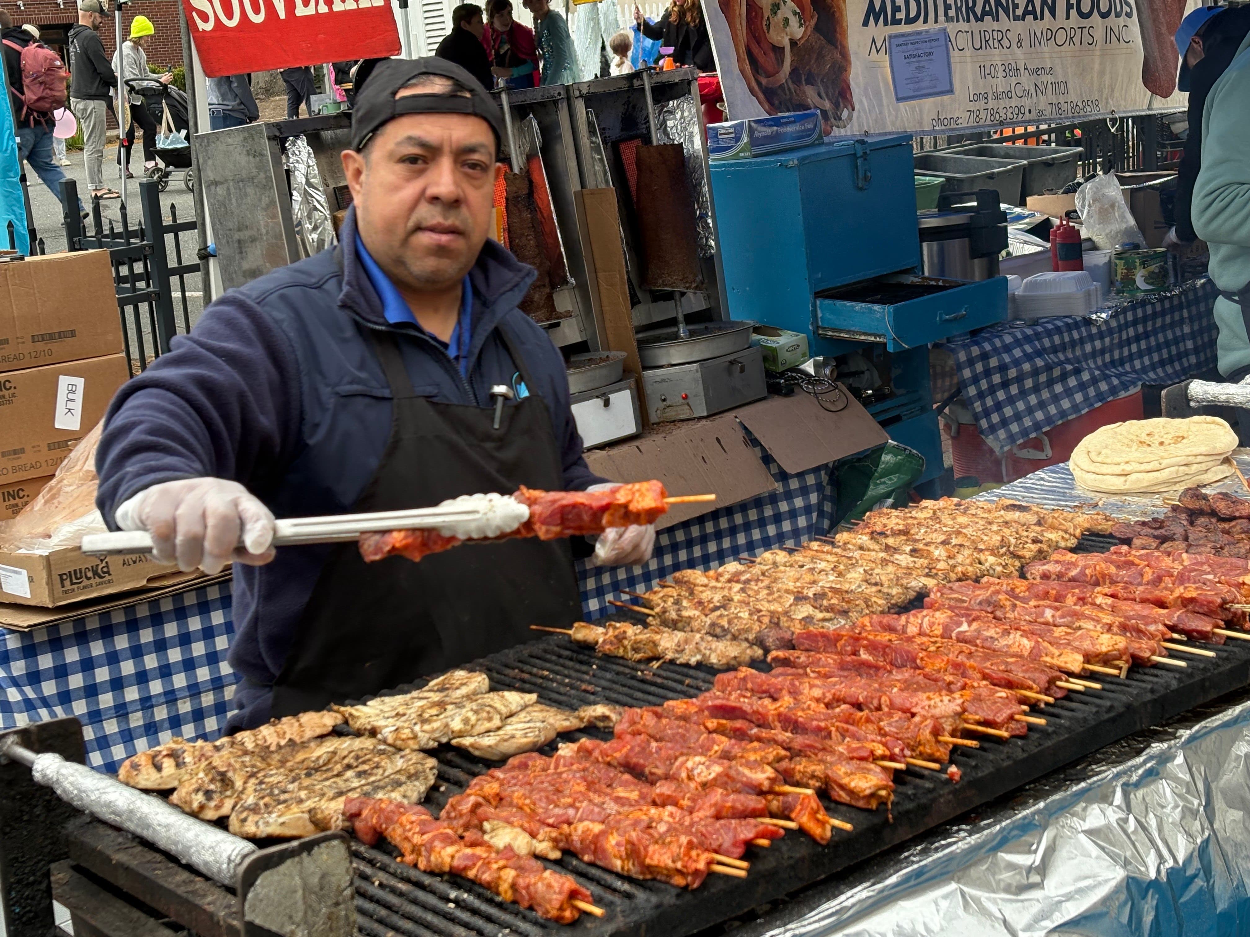 Cooking shish-ke-bob at the Souvla King Gyro booth. (Jeff Werner/Patch)