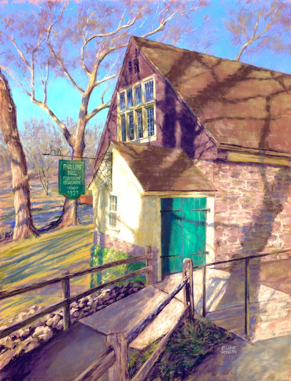NEW HOPE, PA — The Phillips’ Mill juried art show committee has selected a pastel painting of the historic mill, “March Afternoon,” by Donna Ruane Rogers of Frenchtown as its Signature Image for the 95th Juried Art Show.