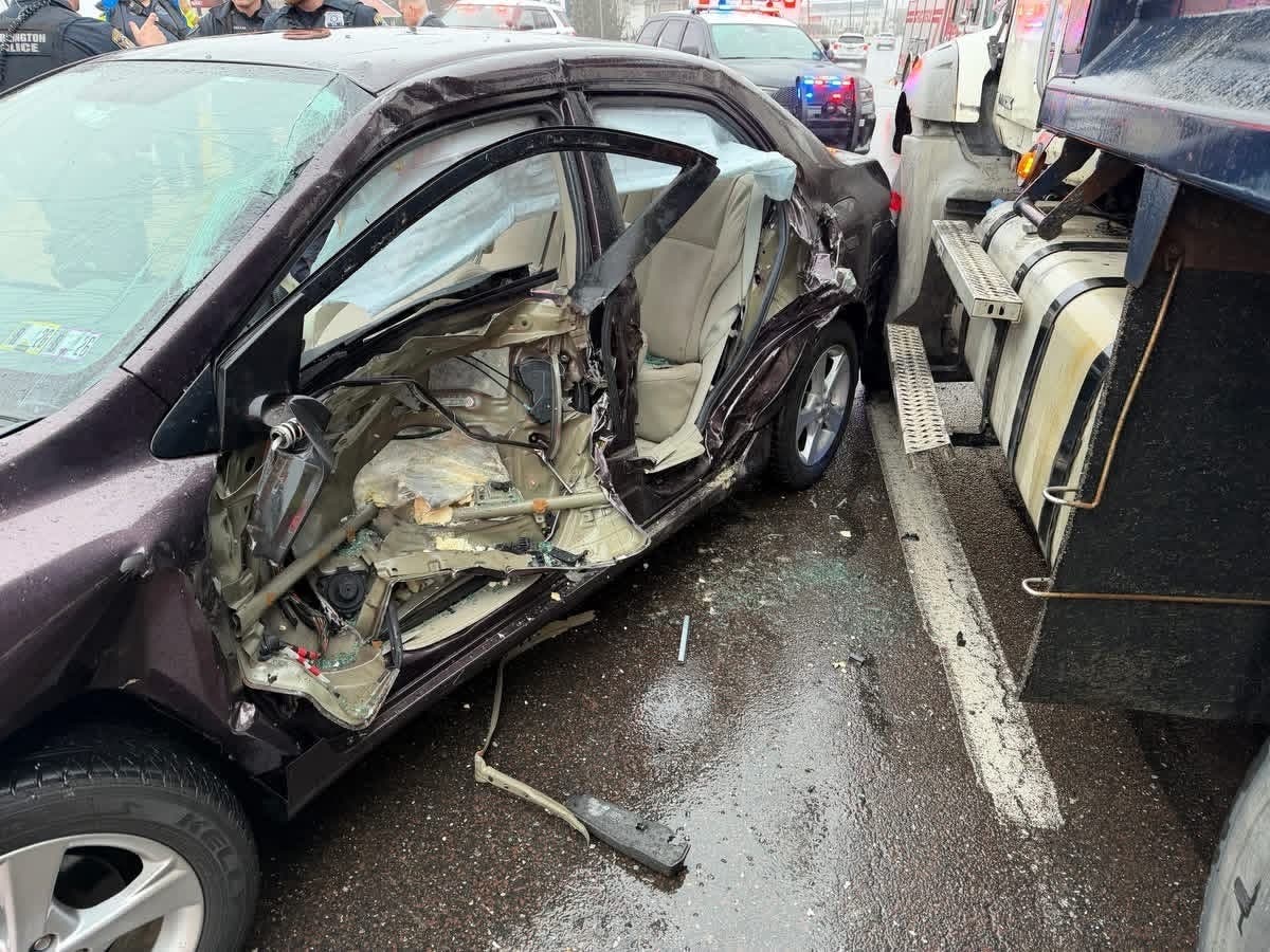 WARRINGTON TOWNSHIP, PA — A driver was hurt Tuesday morning when a car and dump truck collided at the busy intersection of Route 611 and Bristol Road.