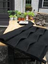 The felt is made from recyclable plastic bottles. I have bought a similar eco-friendly felt textile at the local fabric store but it is not as durable and thick. This came complete with root wrappers, rigid plastic sign board, instructions and loops for hanging. I did refer to their handy video eight times to see how the bulging wrappers nicely tucked themselves into the pockets. Don't ask me how the roots manage to grow into the felt. Regardless, it seemed like a great concept. I love plants and I love industrial felt so this project had to be done and better yet documented.