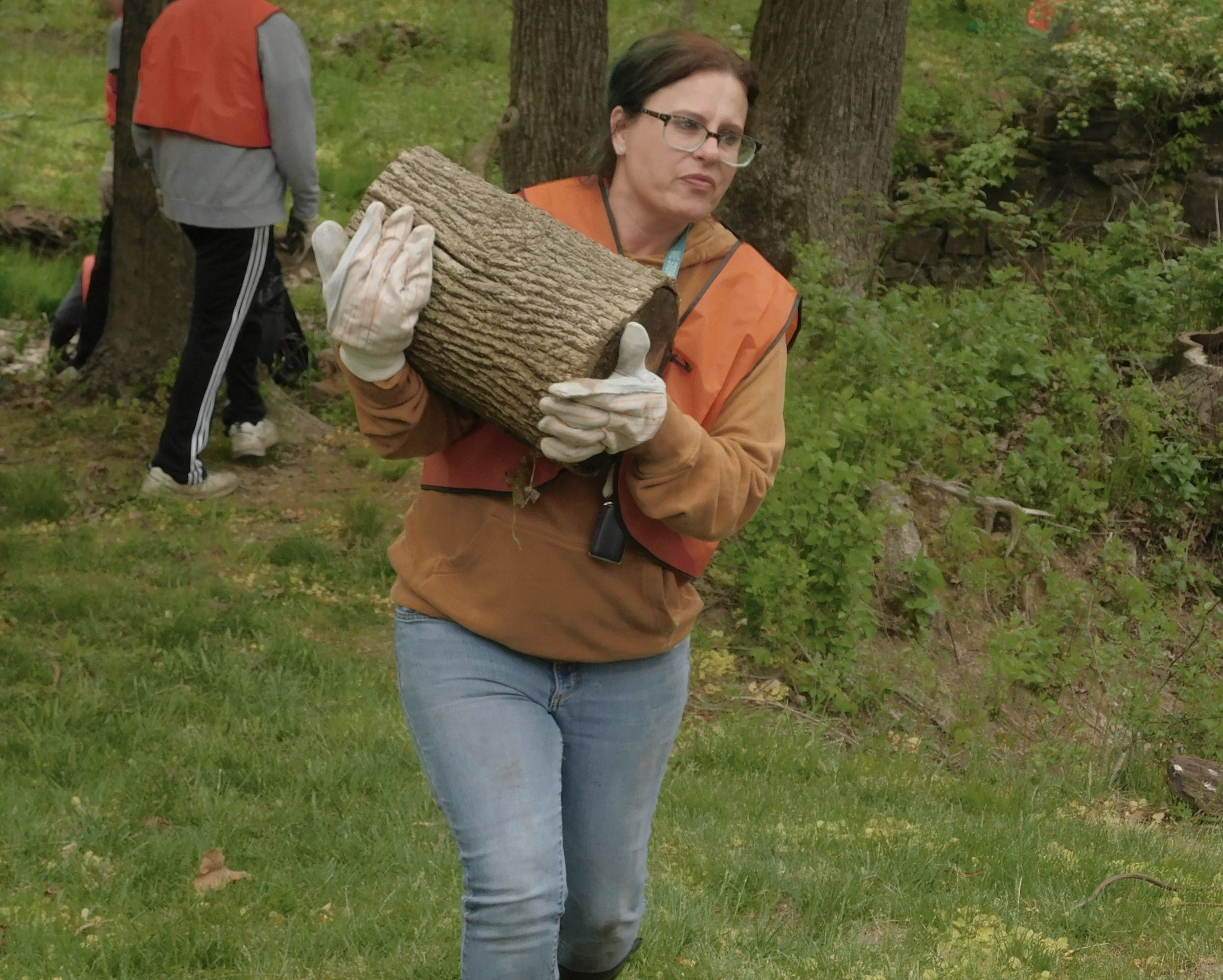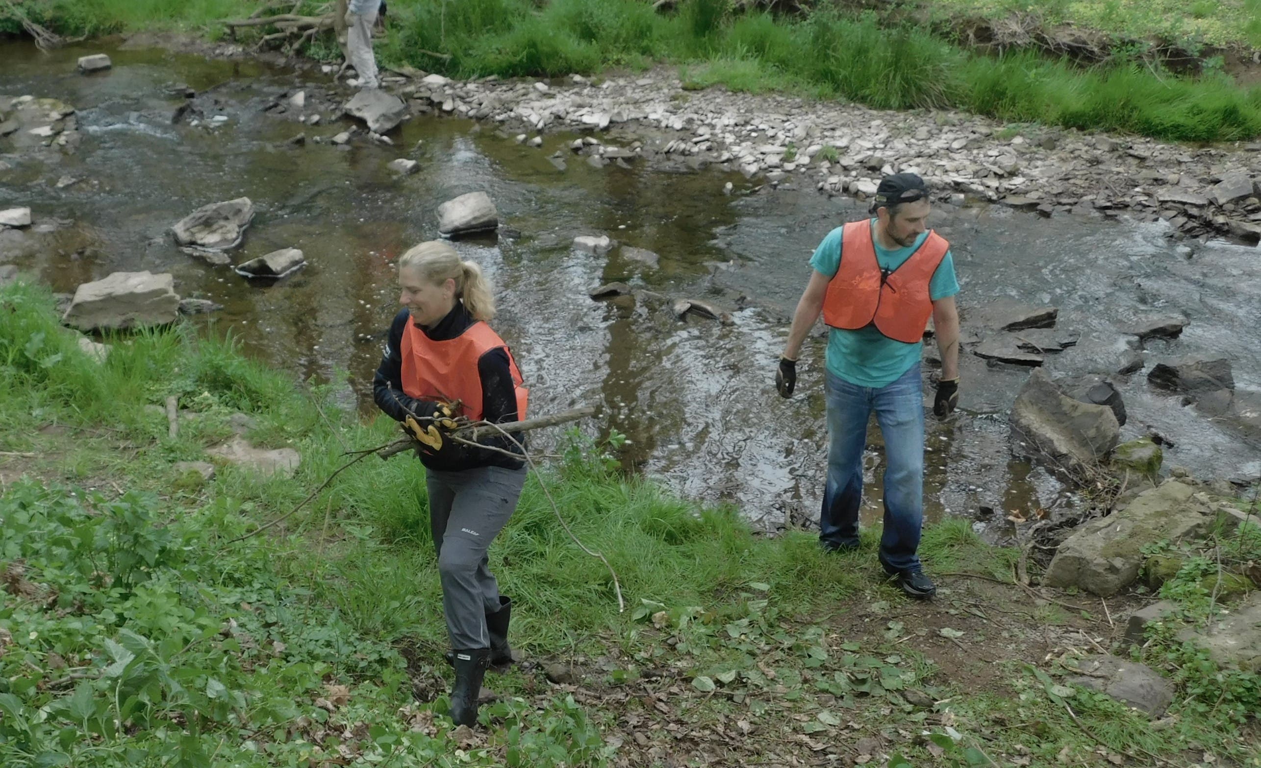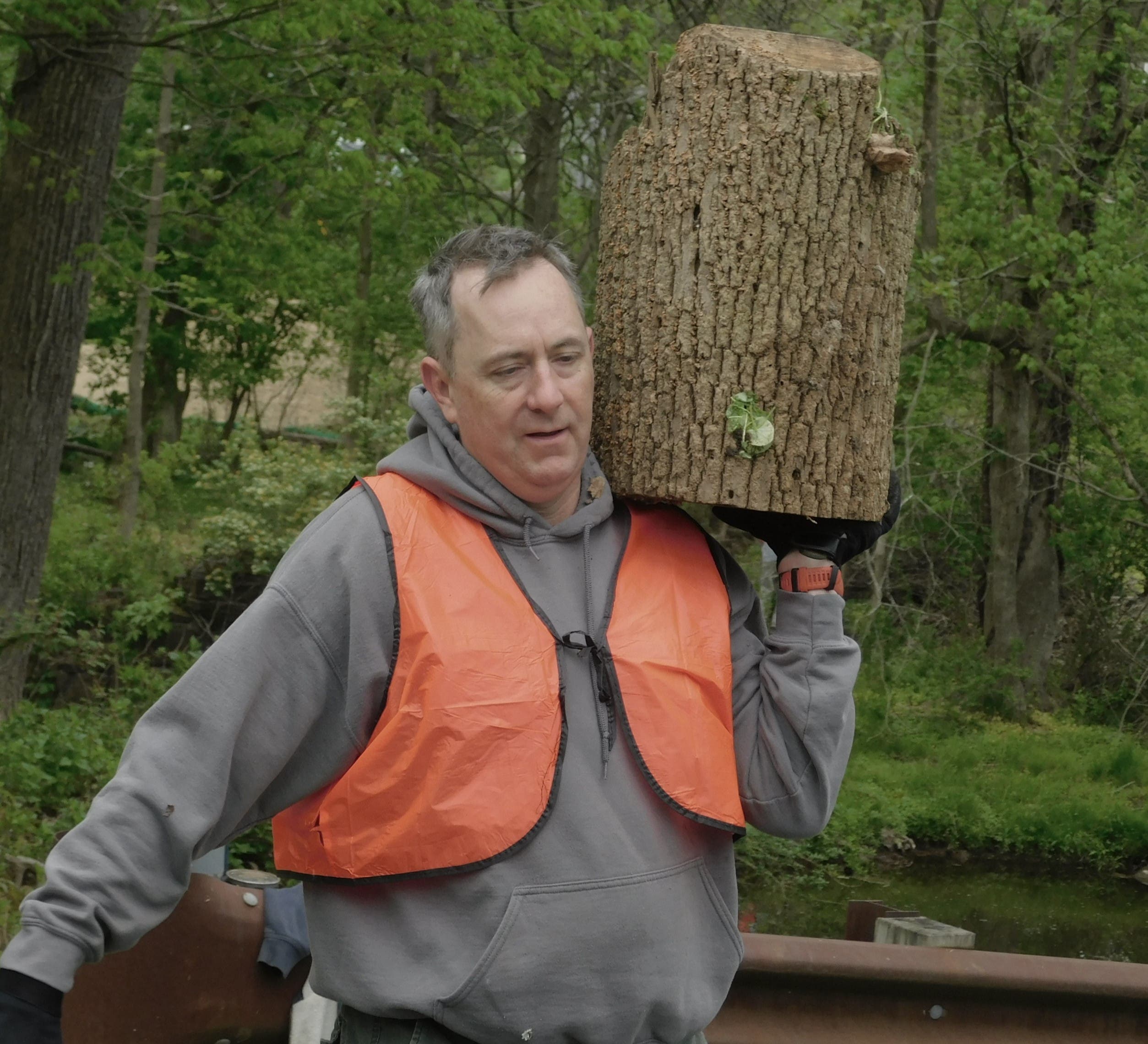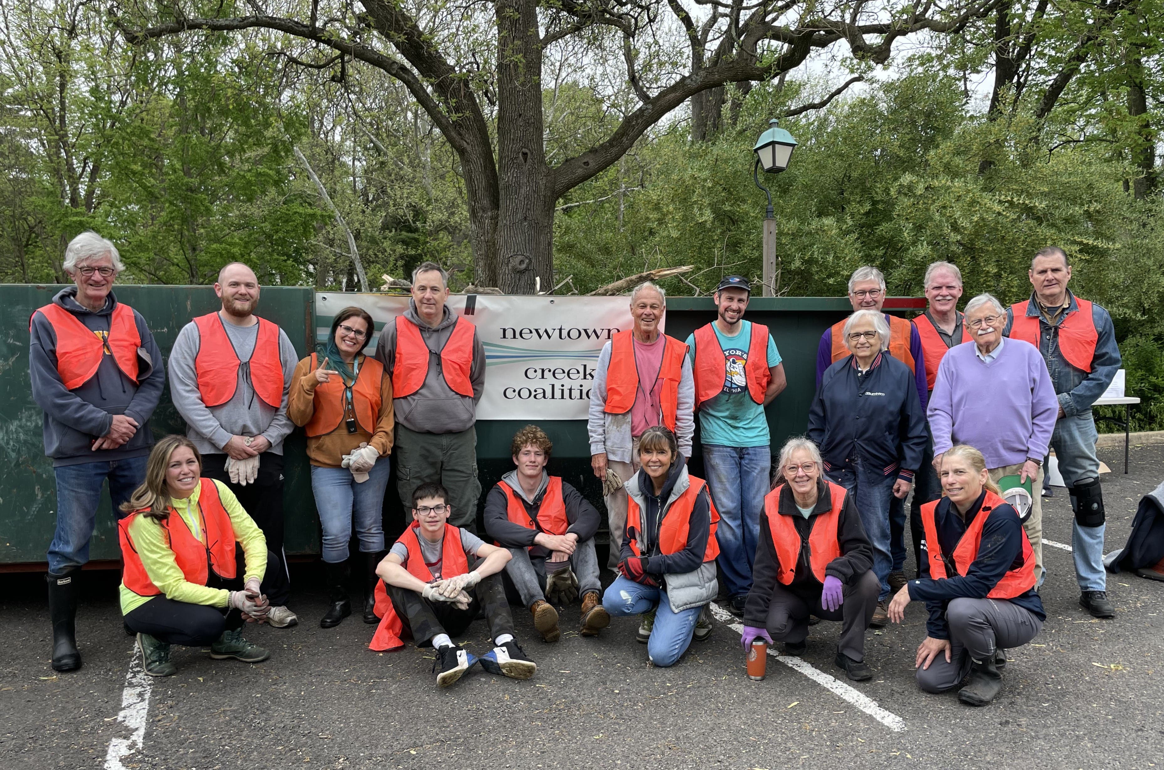 A spring cleanup, organized by the Newtown Creek Coalition, removed six to seven fallen trees from the creek bed behind Penn Community Bank.