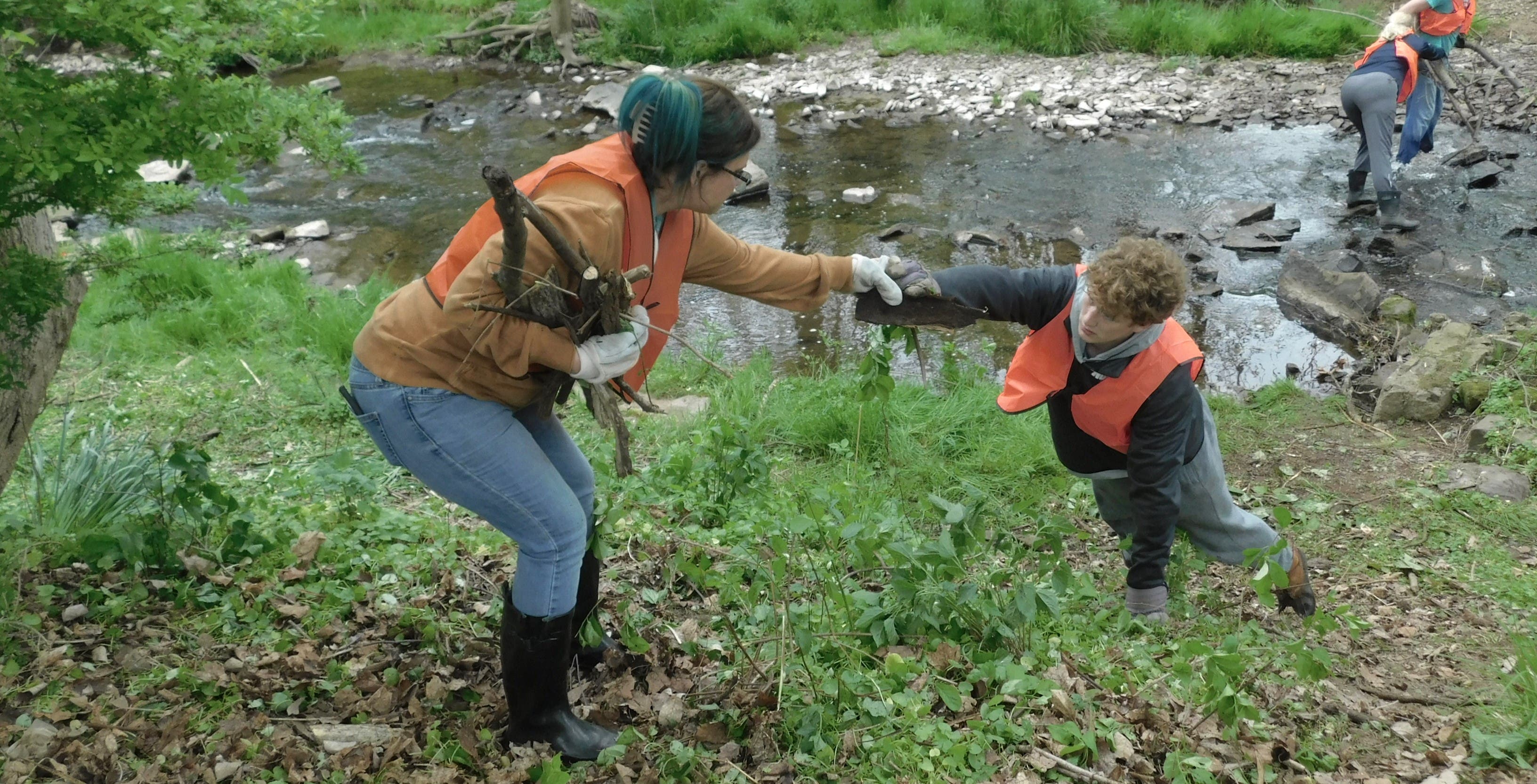 Veteran creek volunteers, including Councilwoman Julia Woldorf, creek coalition president Mike Sellers and the borough’s tree advocate, Ted Schmidt, were joined by former councilwoman Nicole Rodowicz, several Council Rock students and others in helping with the effort.