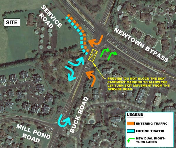 Arcadia at Newtown Holdings, LP, (Arcadia Holdings) proposes to develop a 60-unit single-family home residential community, located on the southwest corner of the intersection of the Newtown Bypass (S.R. 0332) and Buck Road (S.R. 0532) in Newtown Township. One sticking point: How are future residents of the development going to access Buck Road and the Bypass?
