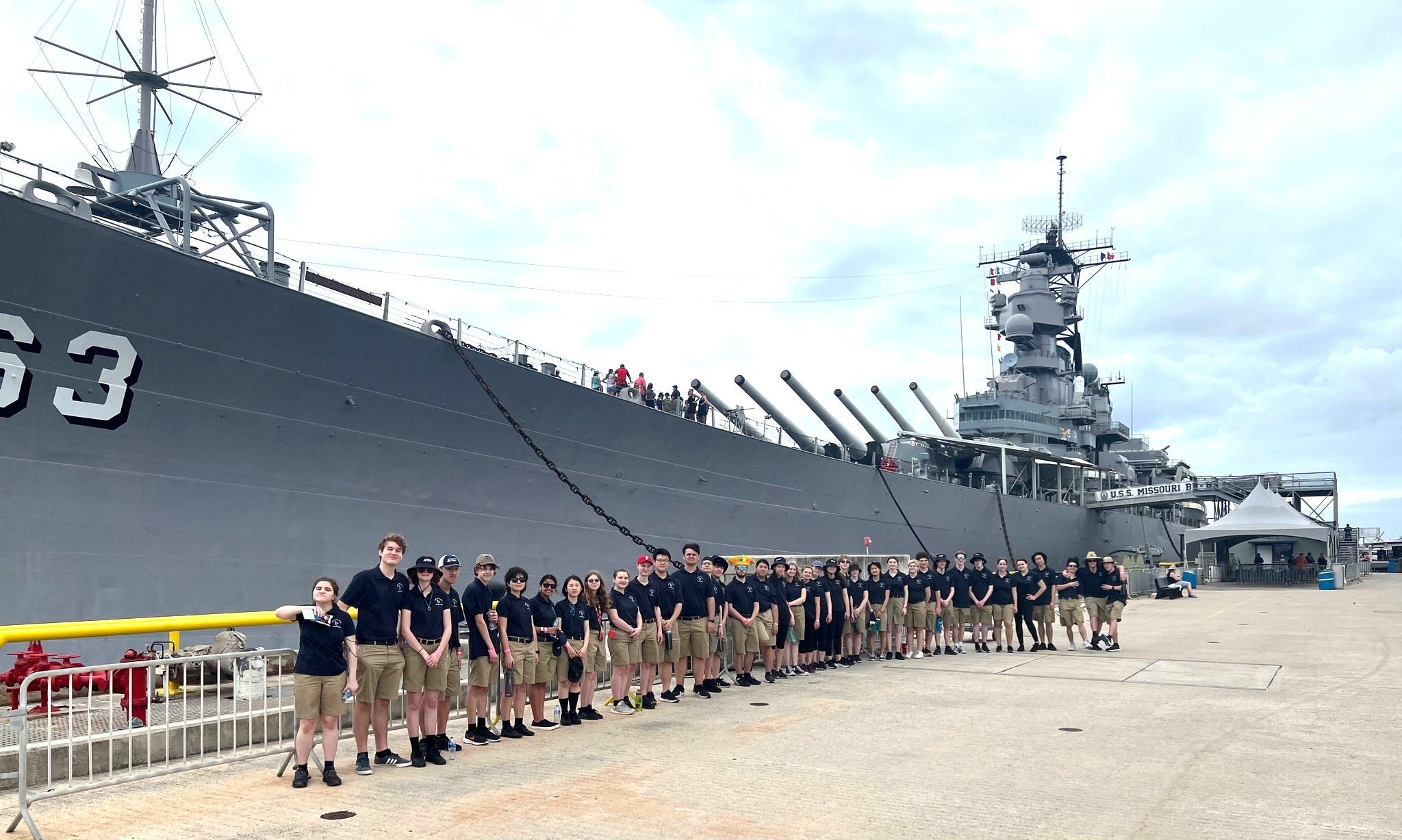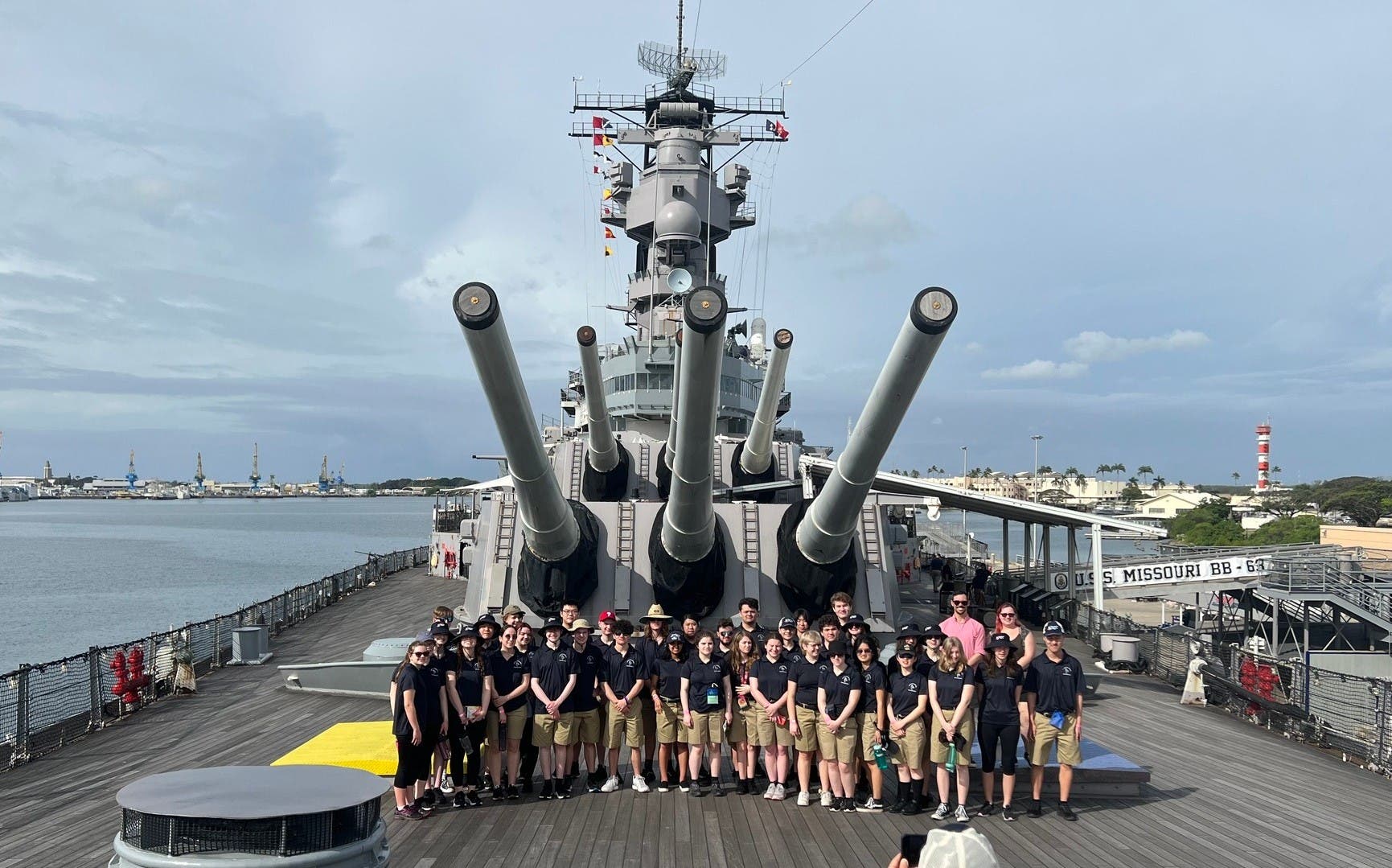 The band next to the USS Missouri. (photo by Council Rock North Band)