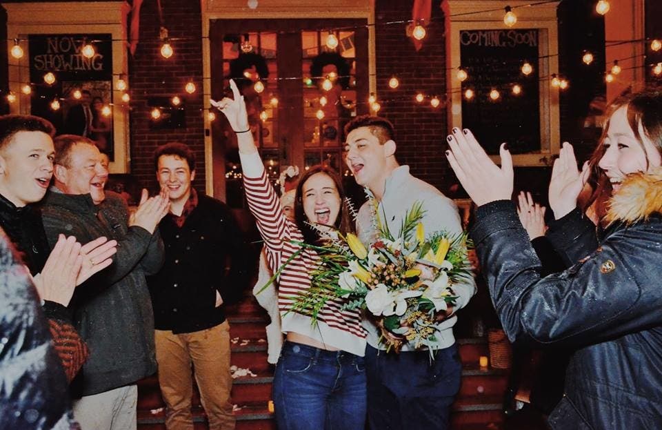 Brett Griffith and Toni Valentini were engaged at the historic theater on State Street on Dec. 20.