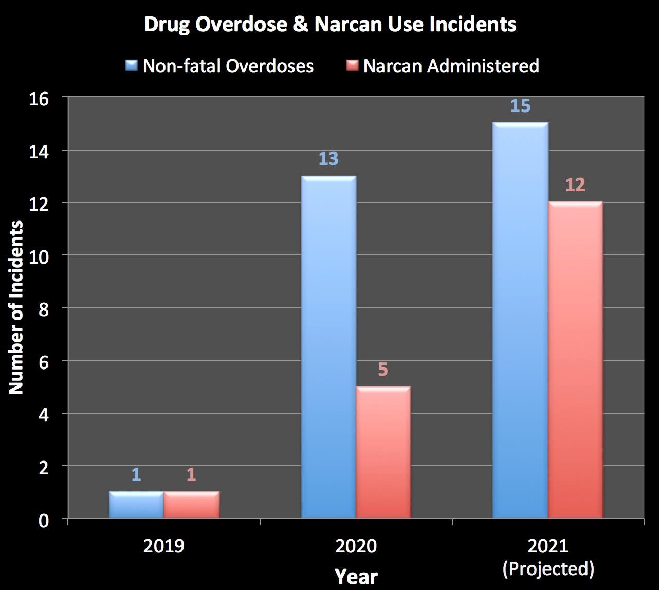 From the police data shown in the chart above, drug abuse increased dramatically during COVID-19, yet people seem to be ignoring the problem or are not aware of the problem. A reporting system called ODMAP shows that the early months of the pandemic brought an 18% increase nationwide in overdoses compared with those same months in 2019. The trend has continued throughout 2020, according to a report by the American Medical Association.