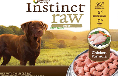 Nature’s Variety became aware of a potential issue after receiving notification from the FDA that a routine surveillance sample of seven pound Instinct Raw Chicken Bites for dogs tested positive for salmonella, the company said.