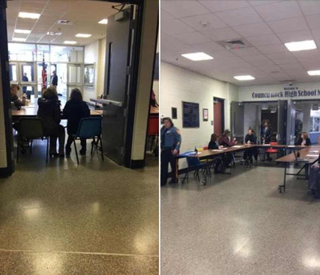 A spokeswoman for Council Rock said the desks were not placed to create a physical blockage but instead were utilized for taking attendance after the event. "We needed a system for student accounting and a space big enough to handle the potential of hundreds of participants. Students who intended to go outside were instructed to use another set of doors altogether and were in NO way impeded or stopped from exiting the building," Susan O'Grady, Council Rock's community relations specialist, said in an email to Patch.