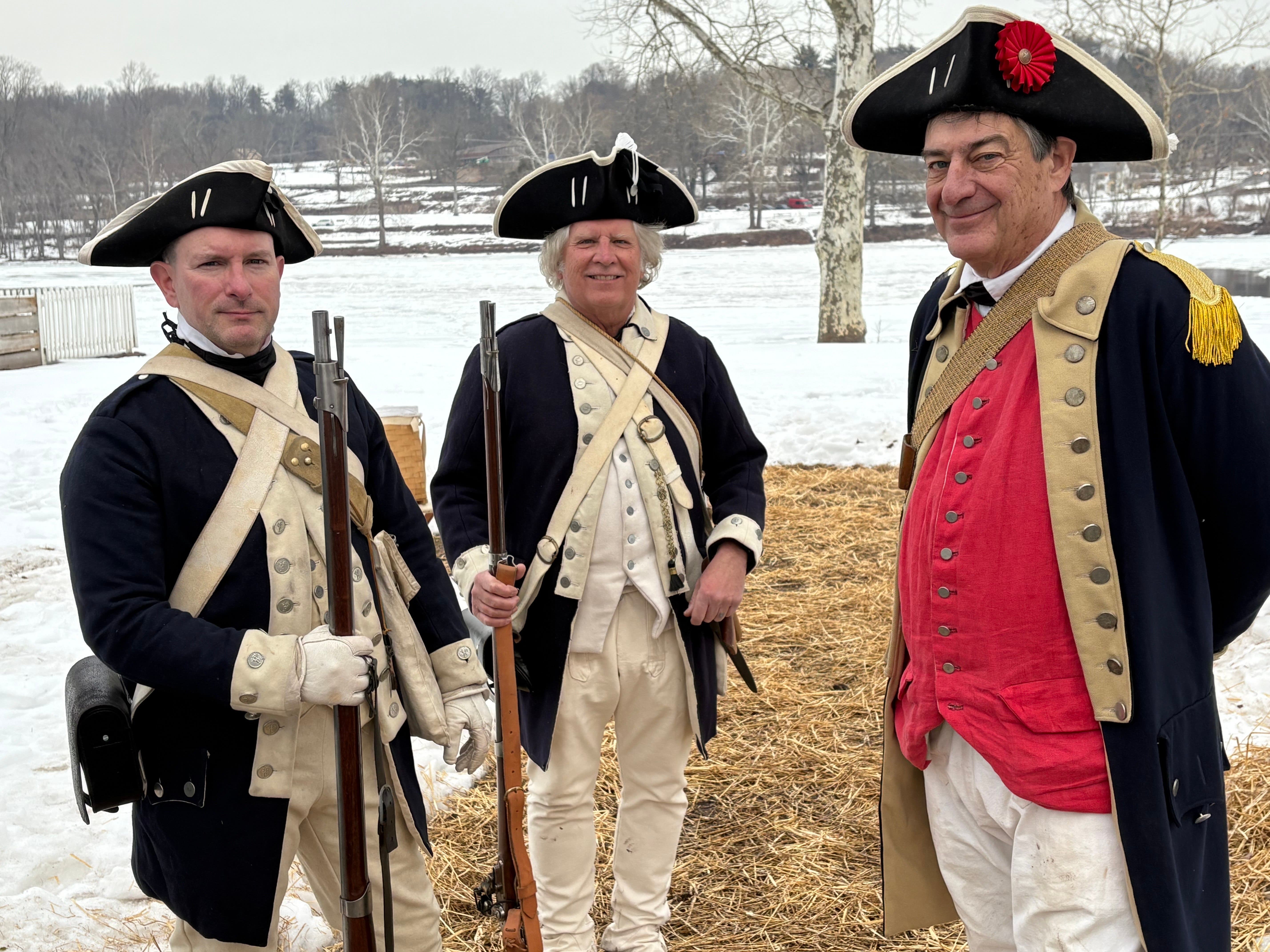 “Thank you for taking time out of your day to celebrate with my soldiers and me,” said Washington, flanked by members of his inner command circle and Washington Crossing’s Fifes and Drums, which serenaded the General with music from the Revolution.