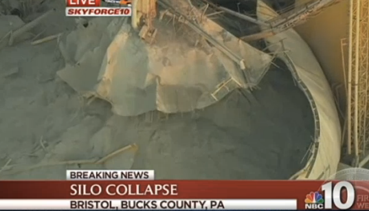 Industrial Park Silo Collapses in Bucks, Trapping One