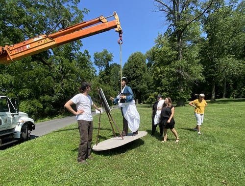 The installation of the statue at Washington Crossing Park, New Jersey.