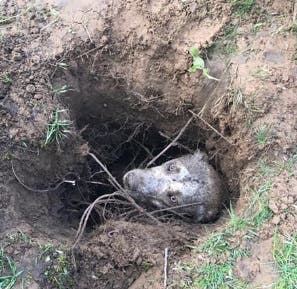 for a family dog stuck in a hole