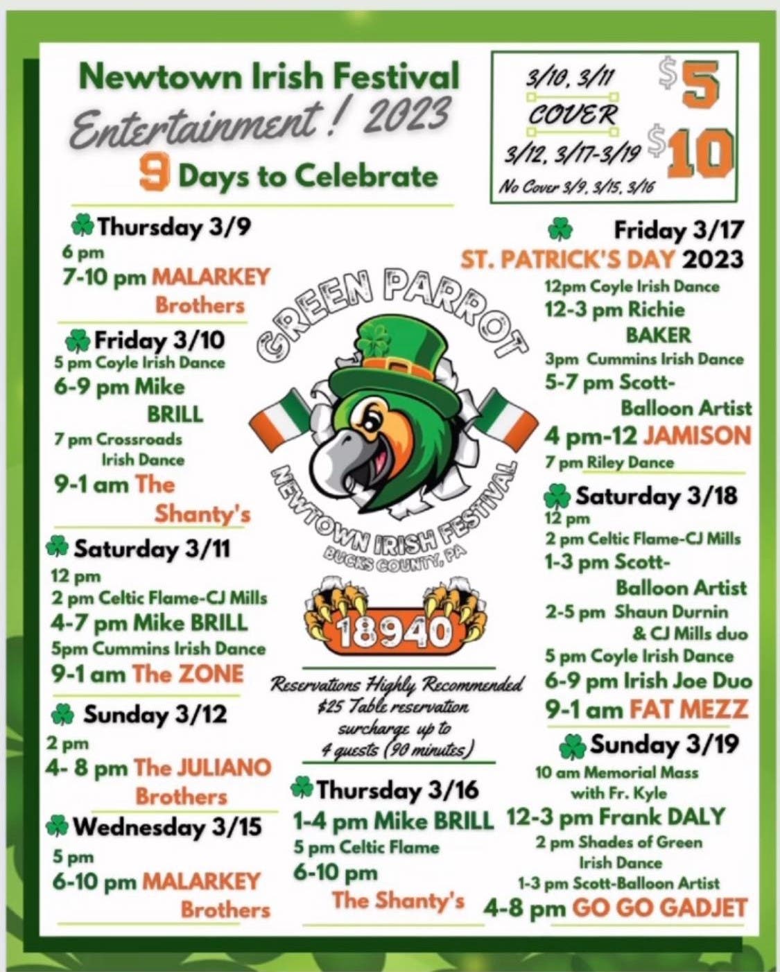 NEWTOWN TOWNSHIP, PA — The Green Parrot is back and better than ever. And just in time for the Newtown Irish Festival.