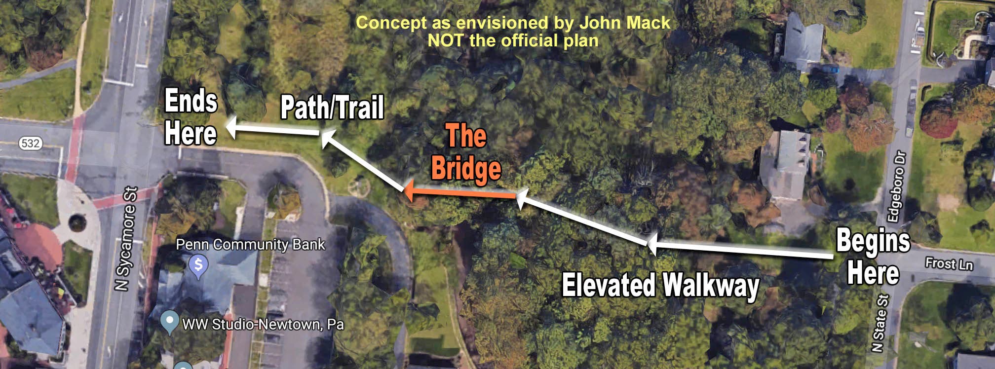 “Ever since that bridge over the creek was closed shortly after we bought our house,” said a Newtown Borough resident, “it has restricted access back to the Sycamore Street area. If we could restore the bridge it will be a lot safer and more convenient for borough residents to access those shops and shop local. It also could make the area of North State Street/Edgeboro Drive more desirable from a real estate perspective,” said the resident.