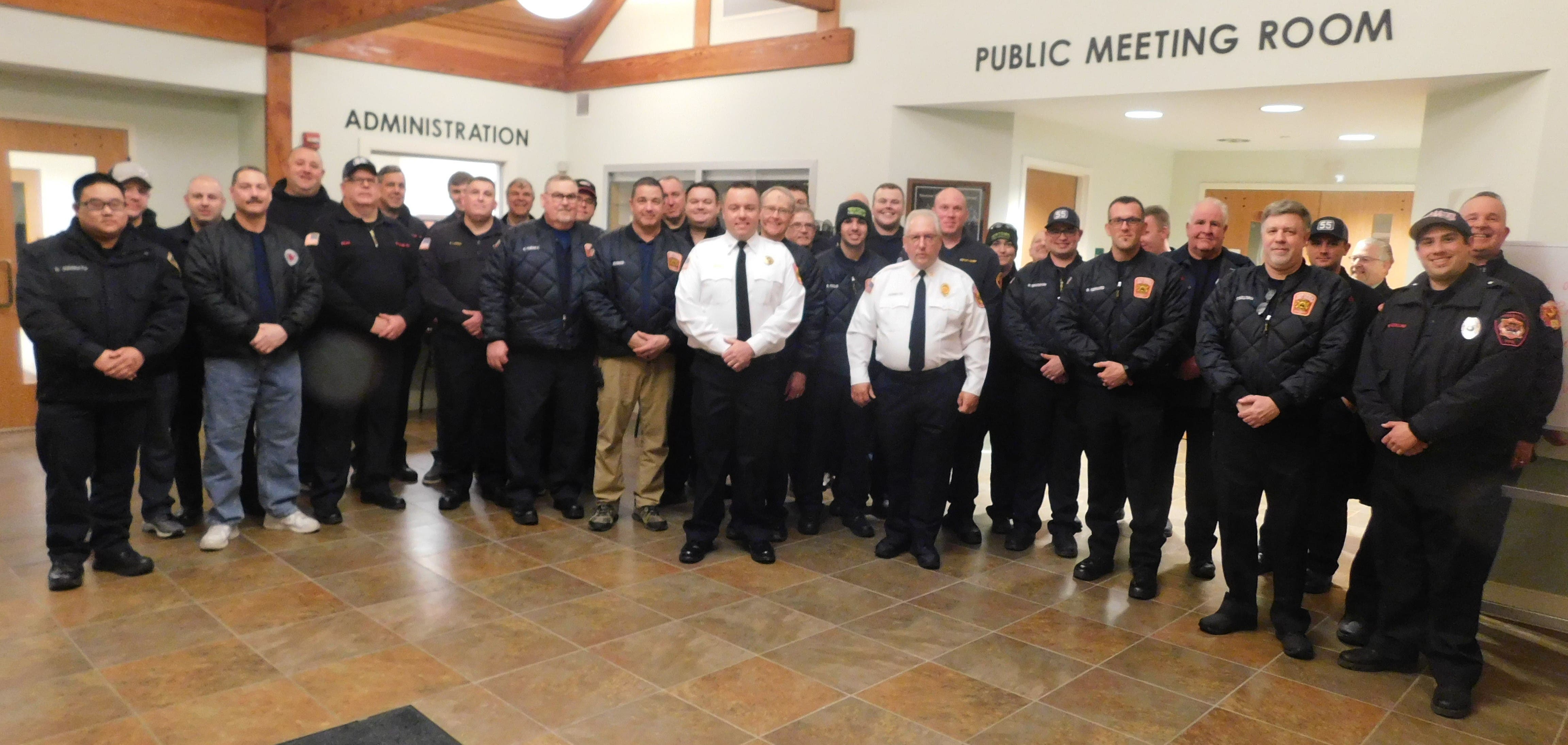 A large contingent of firefighters filled the meeting room inside the Newtown Township building as District Judge Mick Petrucci administered the oath of office to the township’s newest employee.