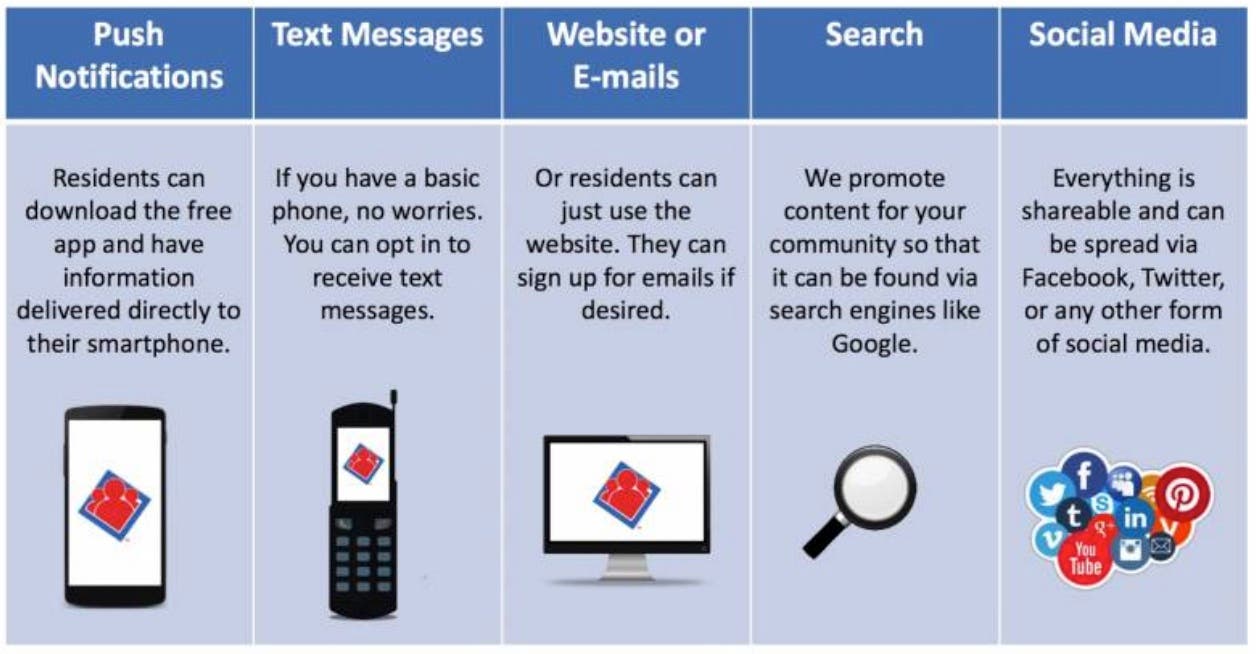 With Savvy the Township can push information about hearings and other meetings to residents and be assured it is received in a timely fashion -- something not possible with the website, postal mail, newspaper ads, or with social media such as Twitter, Facebook, or Nextdoor.