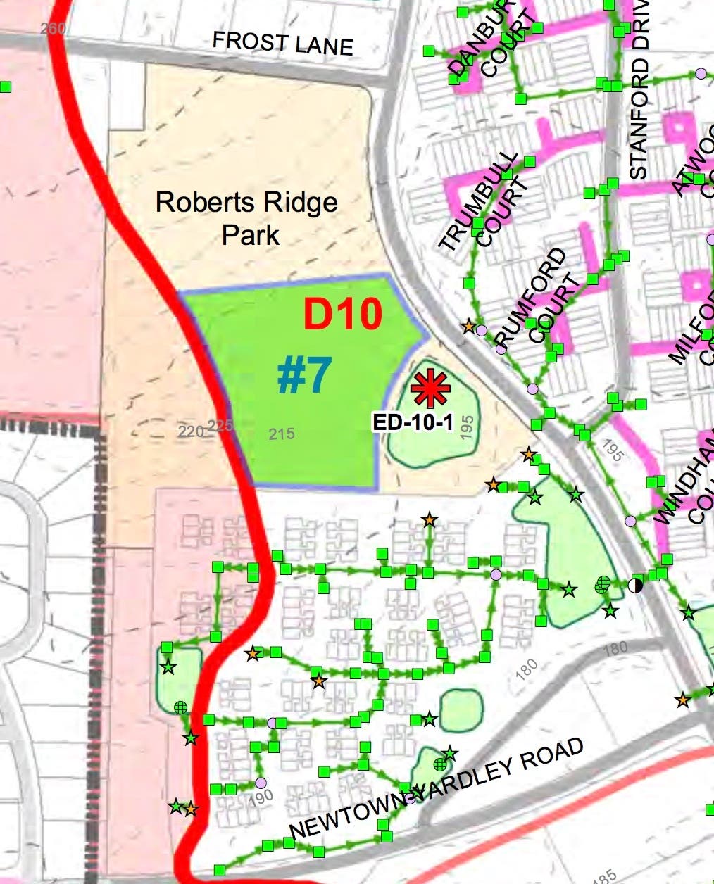 Included in the list of potential "meadow conversions" is 6.21 acres of the 22.8 acre Roberts Ridge Park located on Lower Dolington Road at Frost Lane. The area that the Township is considering for conversion to a meadow appears to be the grassy area where the Newtown Parks & Recreation Department hosts its “Super Soccer Stars” educational program for children ages 2-3 (see Figure).