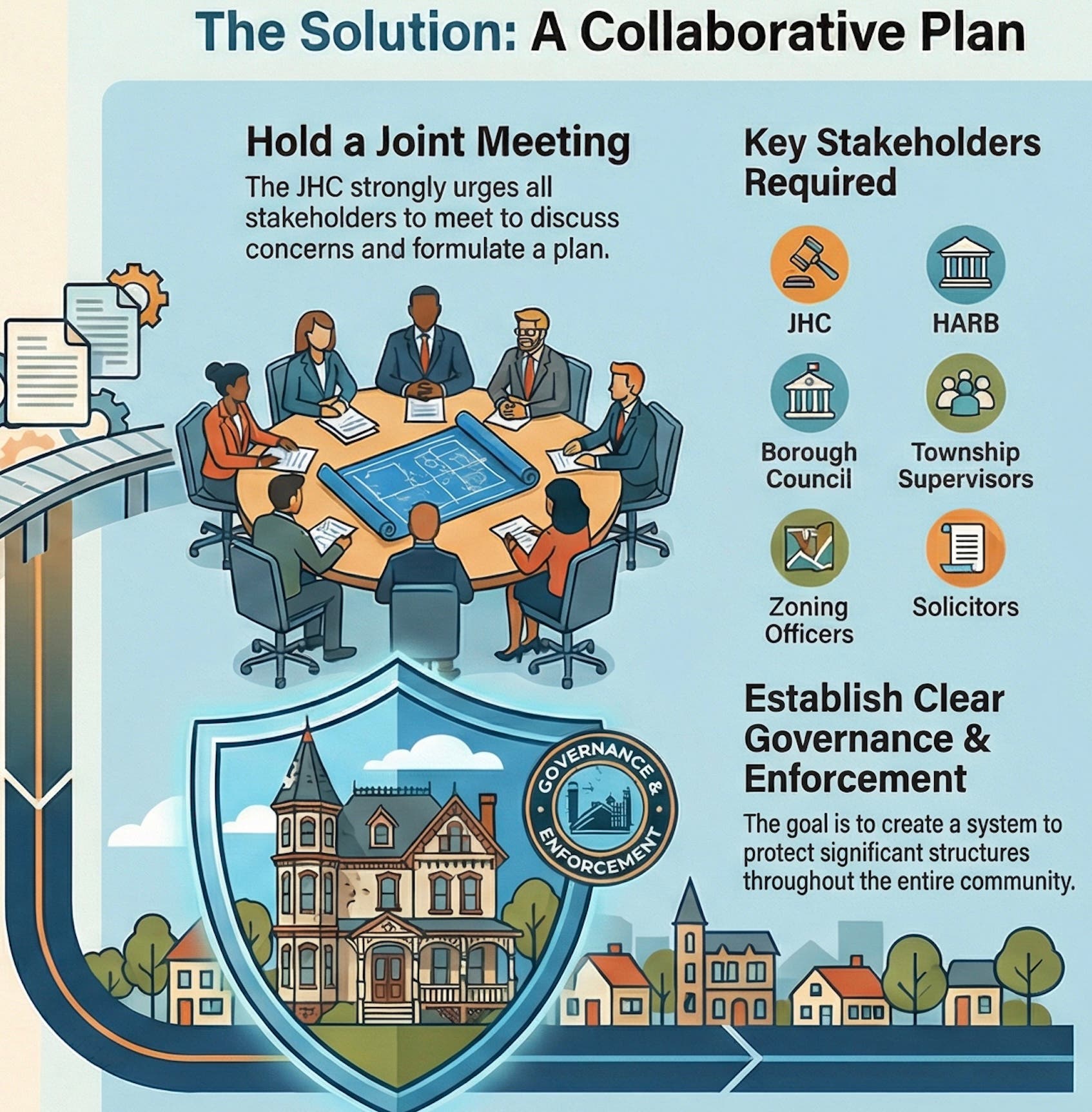 The message from the JHC is clear: a preservation loophole may be leaving many historic properties unprotected; repeated requests for action appear to have gone unanswered; and the volunteer stewards tasked with preservation are increasingly frustrated.