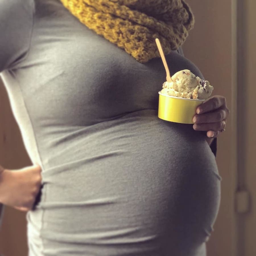 It's actually called the "Baby Bump" and it's not simply pickle ice cream. The pickled goodness is swirled with chocolate-covered potato chips and chocolate chip cookies.