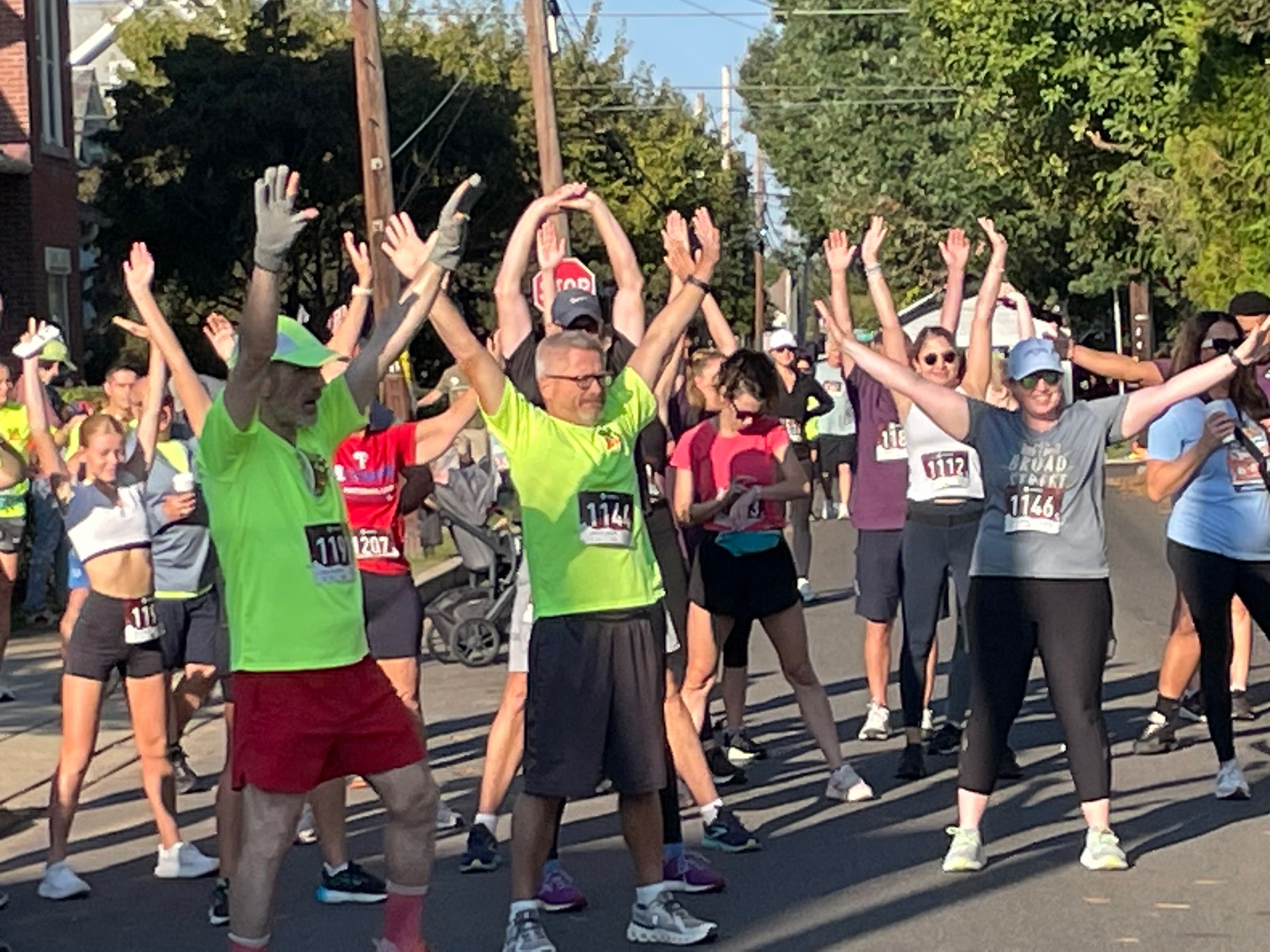 Race participants limber up for the 5K Race. (Jeff Werner/Patch)