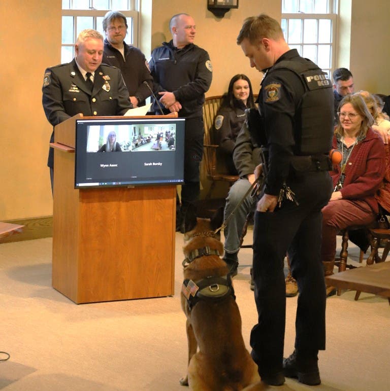 SOLEBURY TOWNSHIP, PA — The Solebury Township Police Department welcomed a new officer to the force and took some time to commend a handful of officers during Tuesday evening's meeting of the Solebury Township Board of Supervisors.