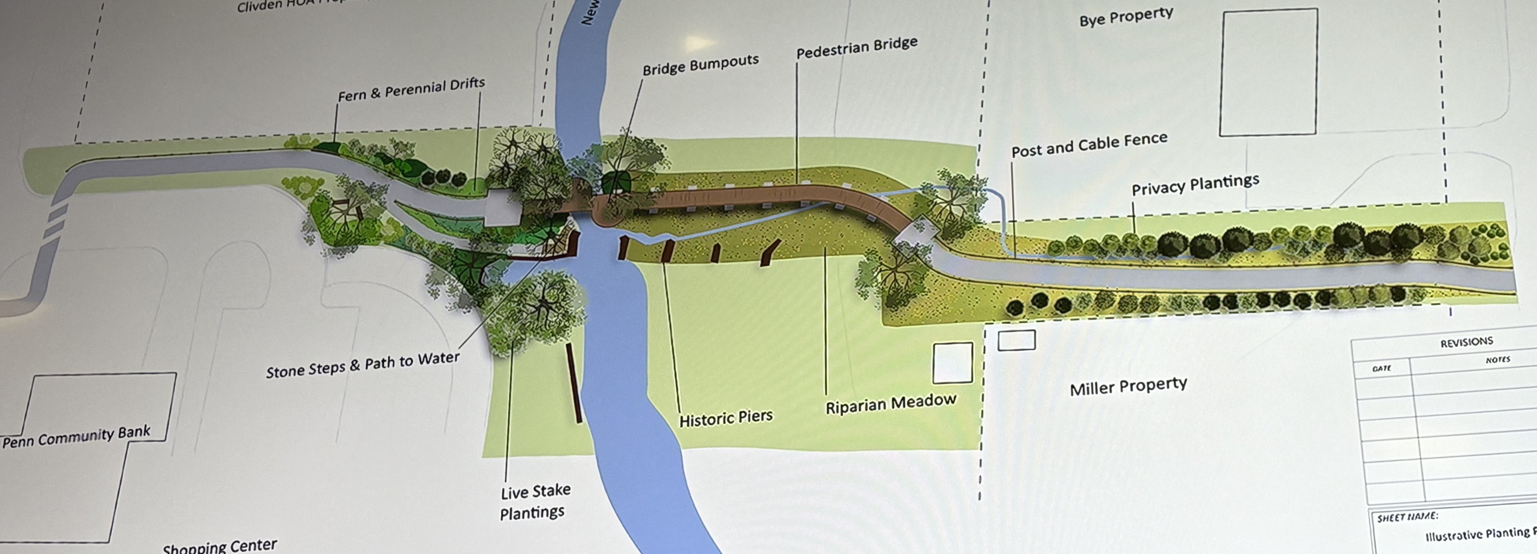 Sellers said the original trolley bridge foundations will remain visible as historical remnants and will be highlighted with lighting at night. And a display will provide information on the history of the Newtown trolley line, which had once traversed Penn Street and State Street before crossing the creek at Frost Lane and continuing its journey to Doylestown.