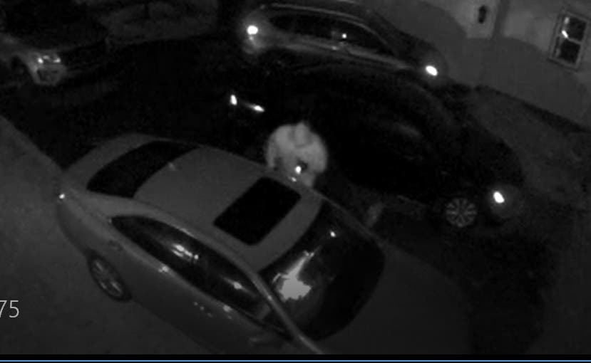 Police were notified that a suspect was going through the resident's car, and after viewing surveillance footage, officers learned he had been looking in the windows.
