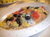 The bride ordered another winner of a dish: salmon Mediterranean style, served with artichoke hearts, kalamata olives, tomato, basil, garlic, and olive oil. The salmon was nicely cooked and the other ingredients, seasoned perfectly to match the fish. A tablemate did not fare well with his salmon prepared with simply with lemon and grilled--it was overcooked and not a pleasant experience for its recipient.
